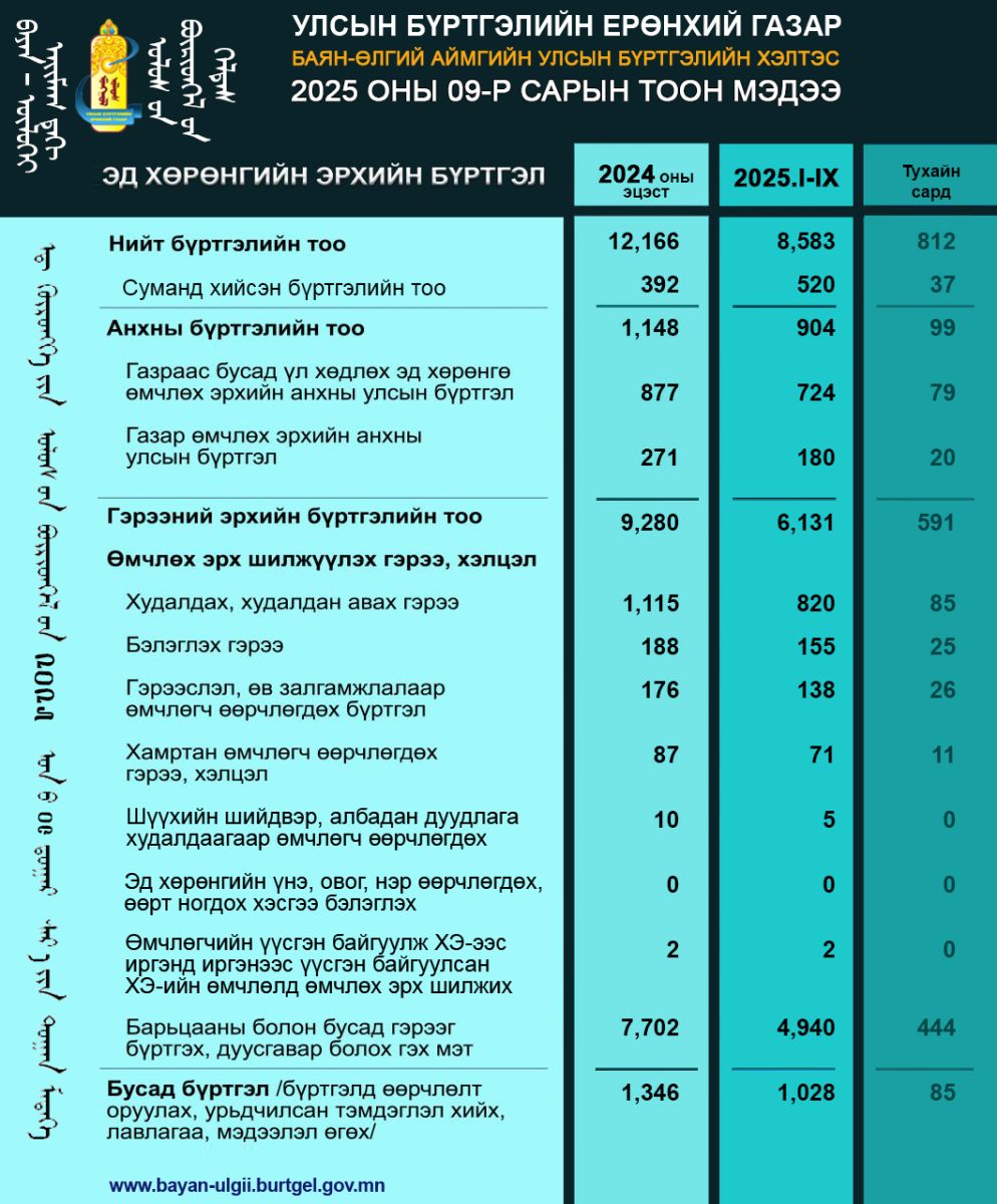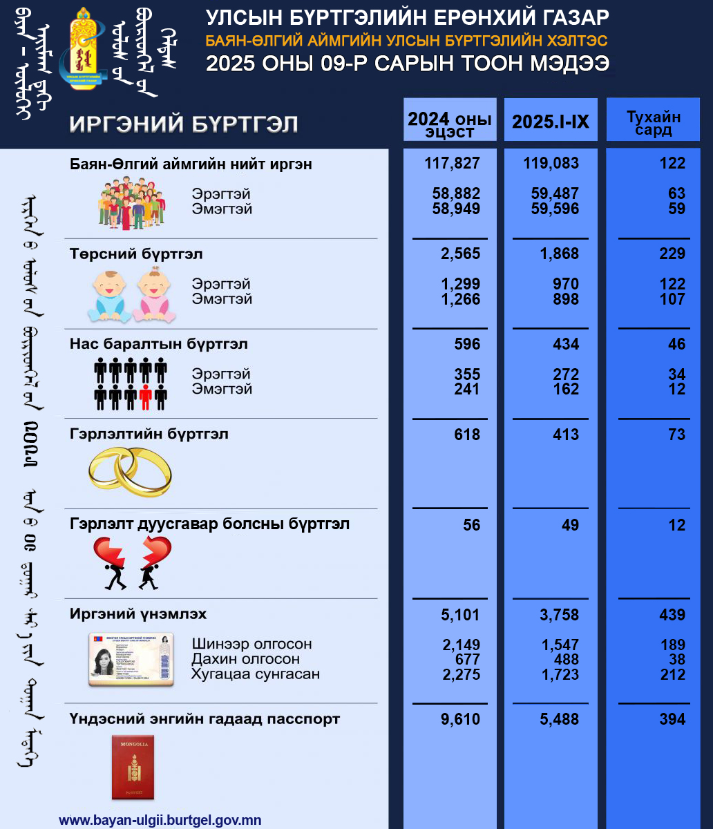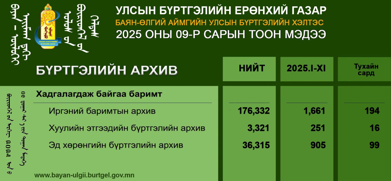 Тус хэлтсийн 2025 оны 09-р сарын тоон мэдээ