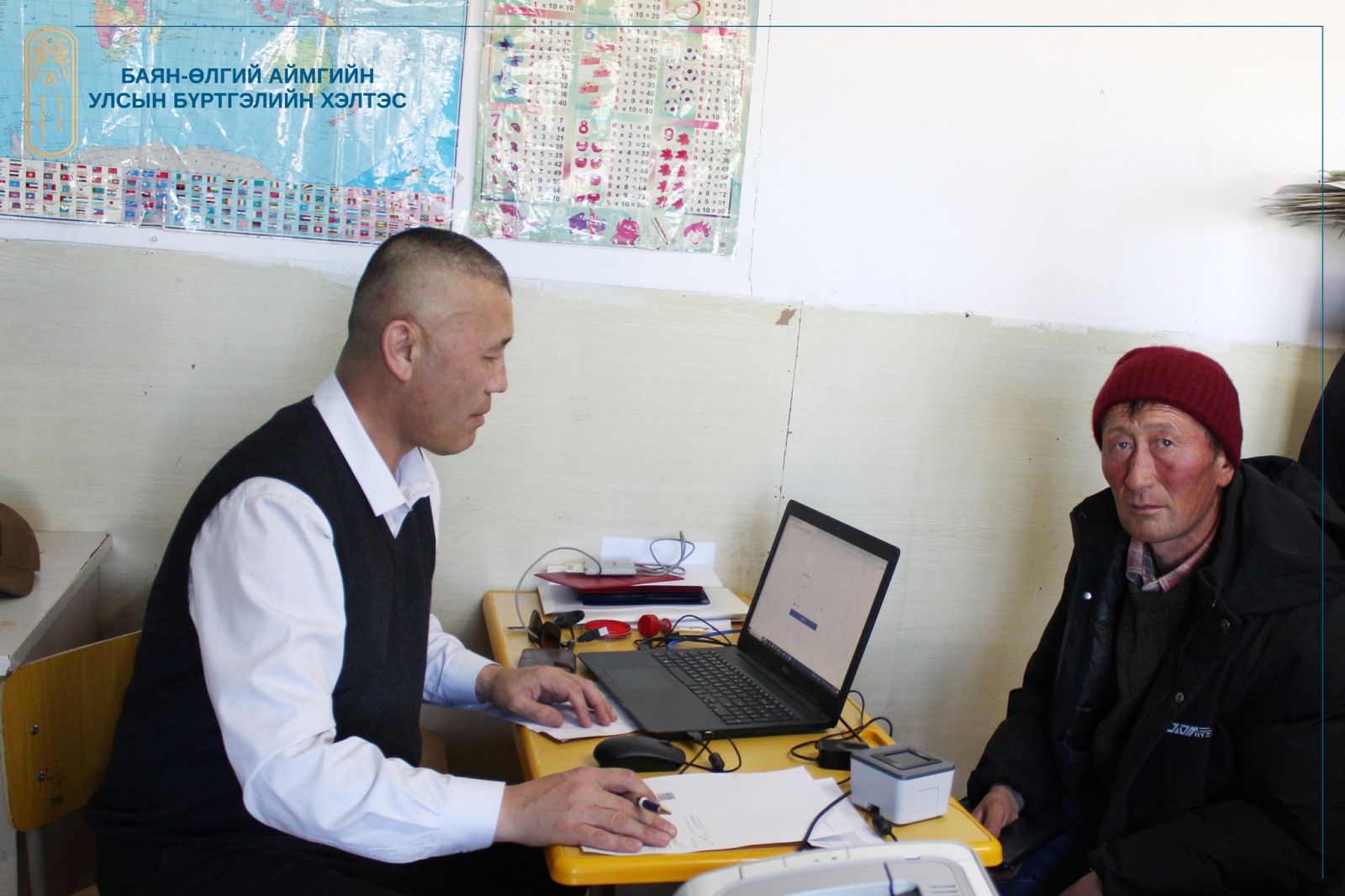 Аймгийн төвөөс алслагдсан, Өлгий сумын 7-р баг буюу "Хотгор" урхайн ард иргэдэд бүртгэлийн үйлчилгээг ойртуулан газар дээр нь очиж хүргэж ажиллав. Үүнд:
