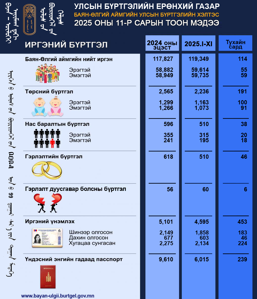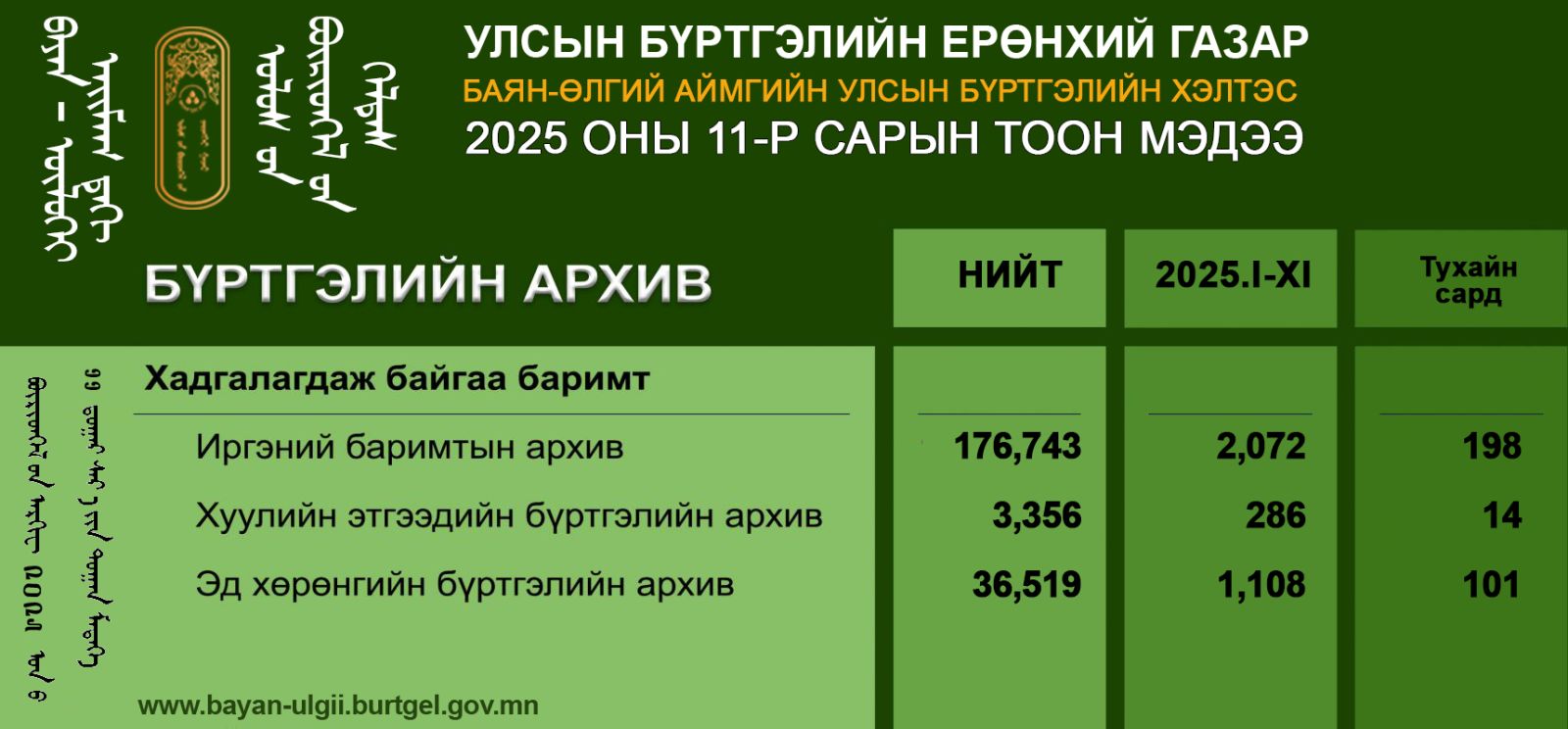 Тус хэлтсийн 2025 оны 11-р сарын тоон мэдээ