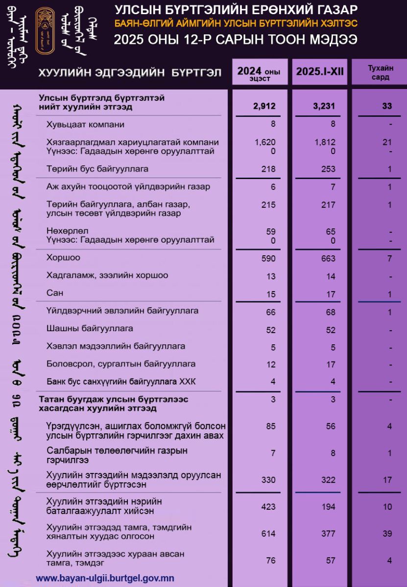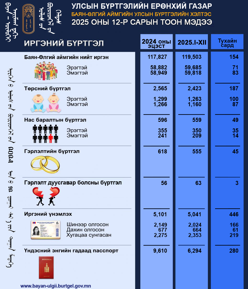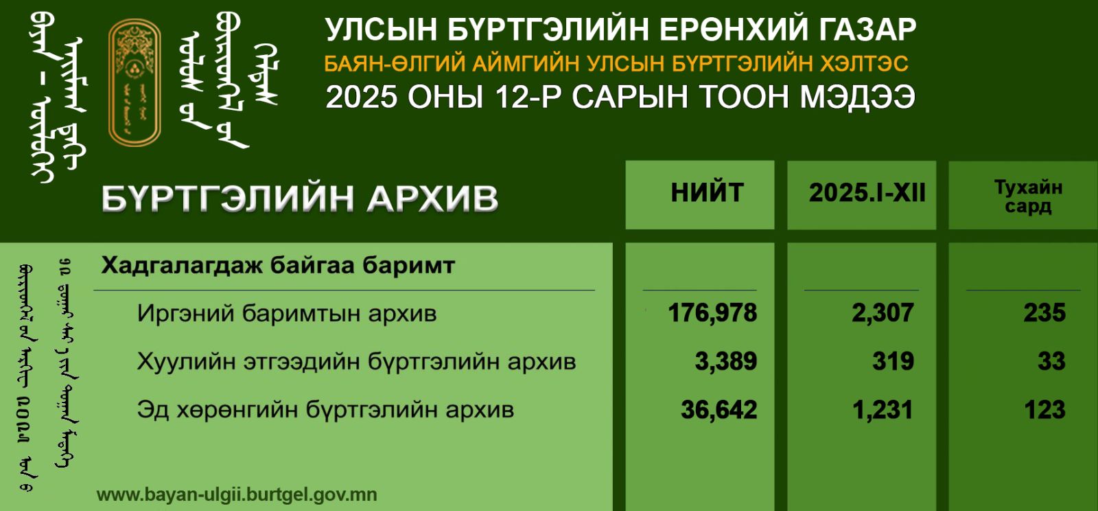 Тус хэлтсийн 2025 оны 12-р сарын тоон мэдээ